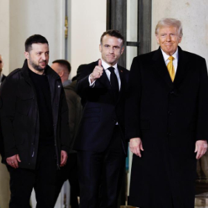 法国总统马克龙7日在爱丽舍宫与受邀出席巴黎圣母院重新开放仪式的美国当选总统特朗普和乌克兰总统泽连斯基举行三方会晤。