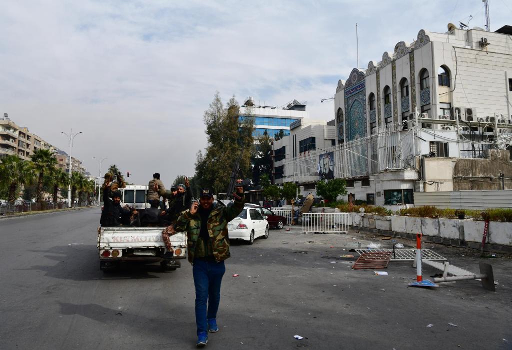 12月8日,武装人员在位于大马士革的伊朗驻叙利亚大使馆外聚集。据伊朗伊斯兰共和国广播电视台8日报道,伊朗驻叙利亚大使馆当天遭武装人员袭击。新华社发(阿马尔·萨法尔贾拉尼摄)