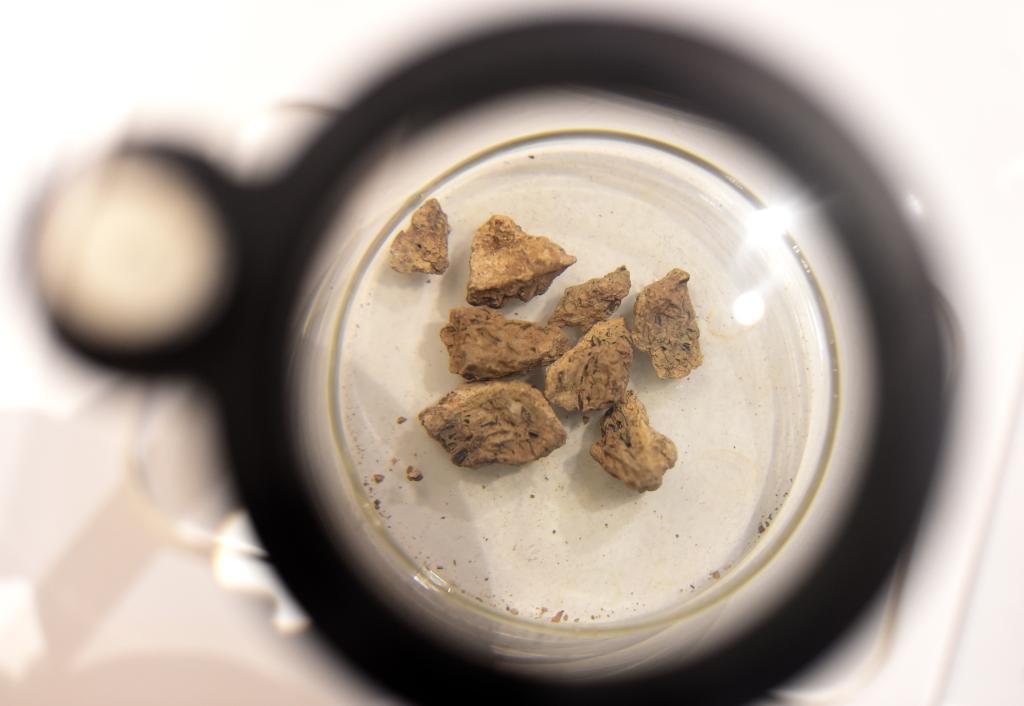 这是2020年11月13日拍摄的上山考古遗址公园内展出的掺杂稻壳的烧土块。(新华社记者 韩传号 摄)