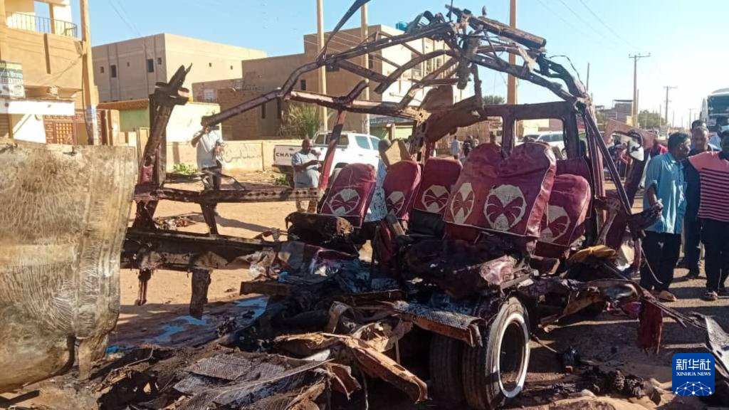 12月10日,在苏丹首都喀土穆西部恩图曼市,人们查看遭炮击的公交车残骸。