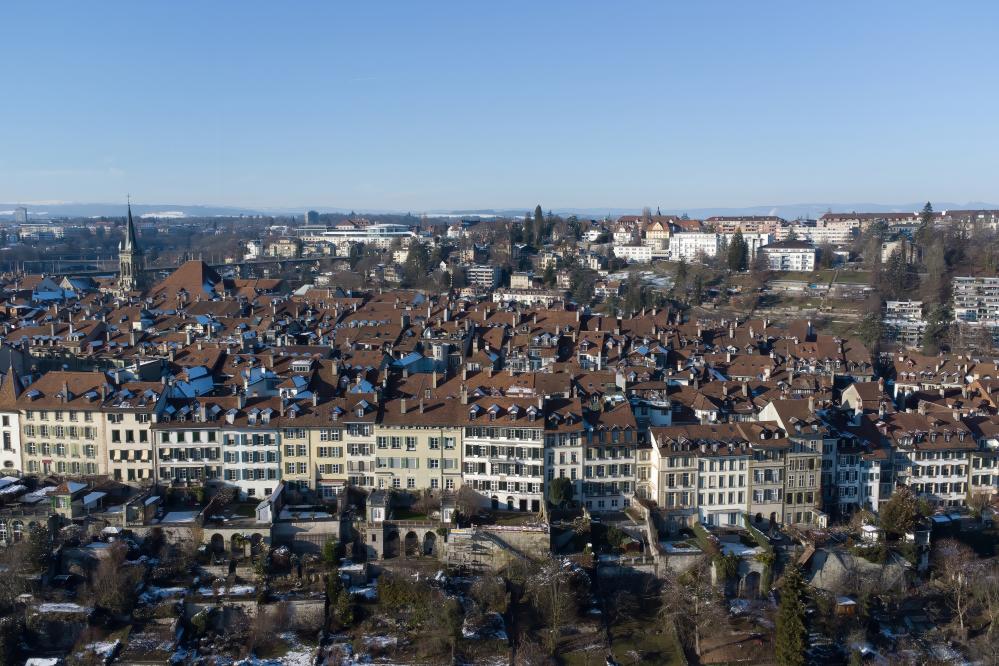 这是1月20日在瑞士伯尔尼拍摄的伯尔尼老城区(无人机照片)。新华社记者孟鼎博摄