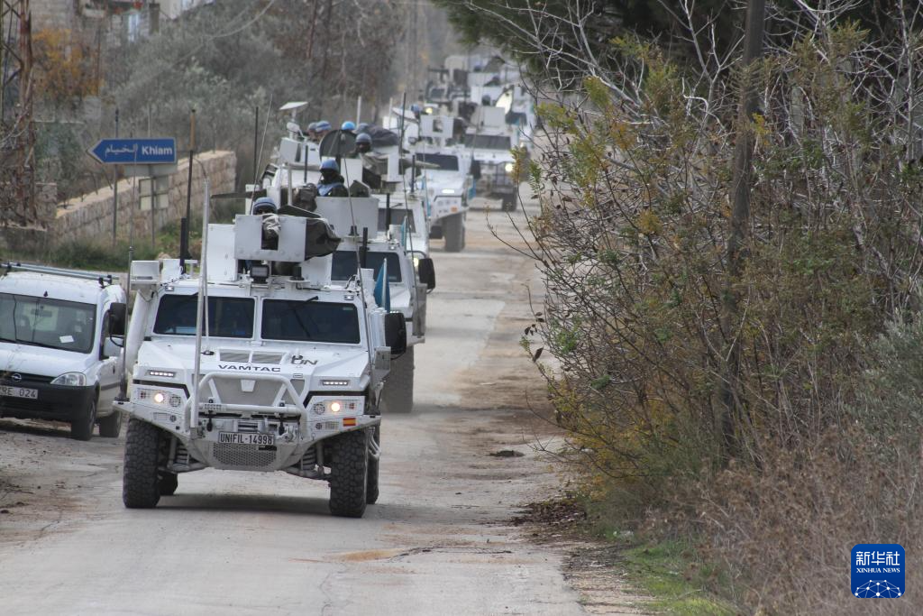 这是12月12日在黎巴嫩希亚姆地区拍摄的联合国驻黎巴嫩临时部队车辆。