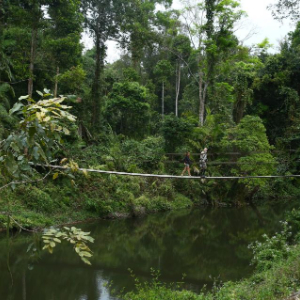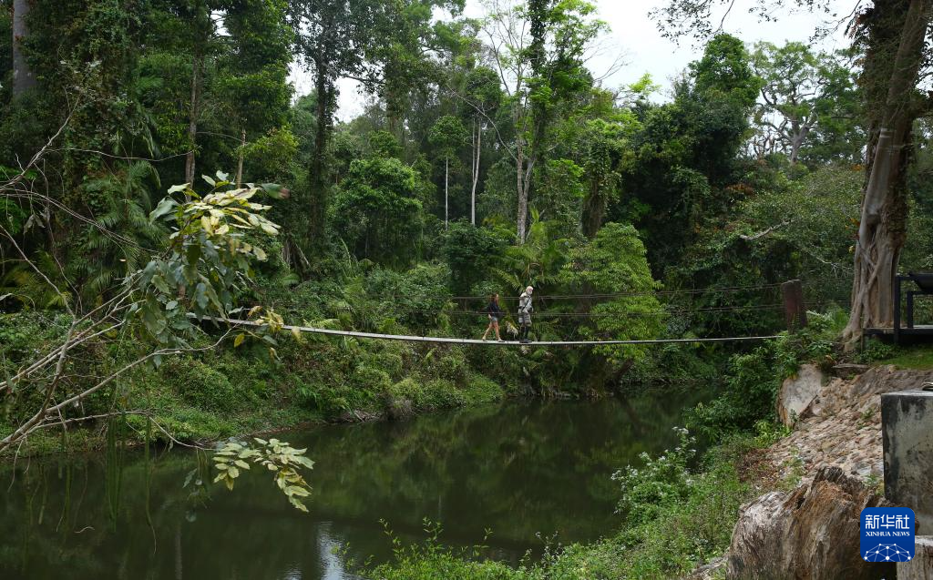 12月13日,在泰国呵叻府考艾国家公园,游客走过自然旅游路线“中泰友谊之路”入口处的索桥。