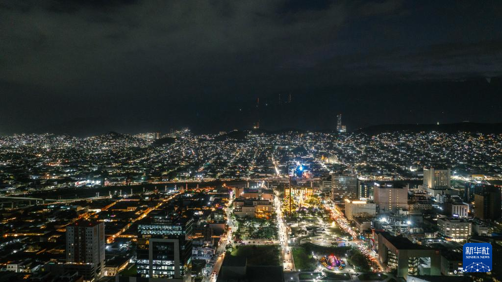 这是12月10日拍摄的墨西哥第三大城市蒙特雷的城市夜景(无人机照片)。