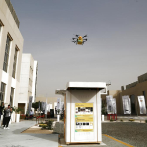 12月17日,美团无人机在阿联酋迪拜的美国罗切斯特理工学院迪拜校区进行飞行配送。