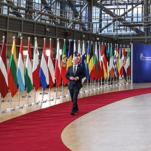 12月19日,在比利时布鲁塞尔,德国总理朔尔茨步入欧盟峰会会场。新华社记者 彭子洋 摄