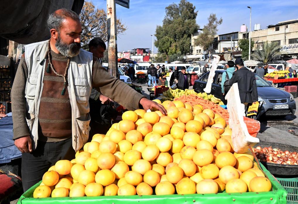 12月16日,商贩在叙利亚大马士革的一个市场上售卖果蔬。新华社发(阿马尔·萨法尔贾拉尼摄)