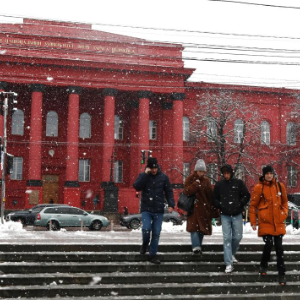 11月21日,在乌克兰首都基辅,人们经过国立基辅大学。新华社发(罗曼·佩图什科夫摄)