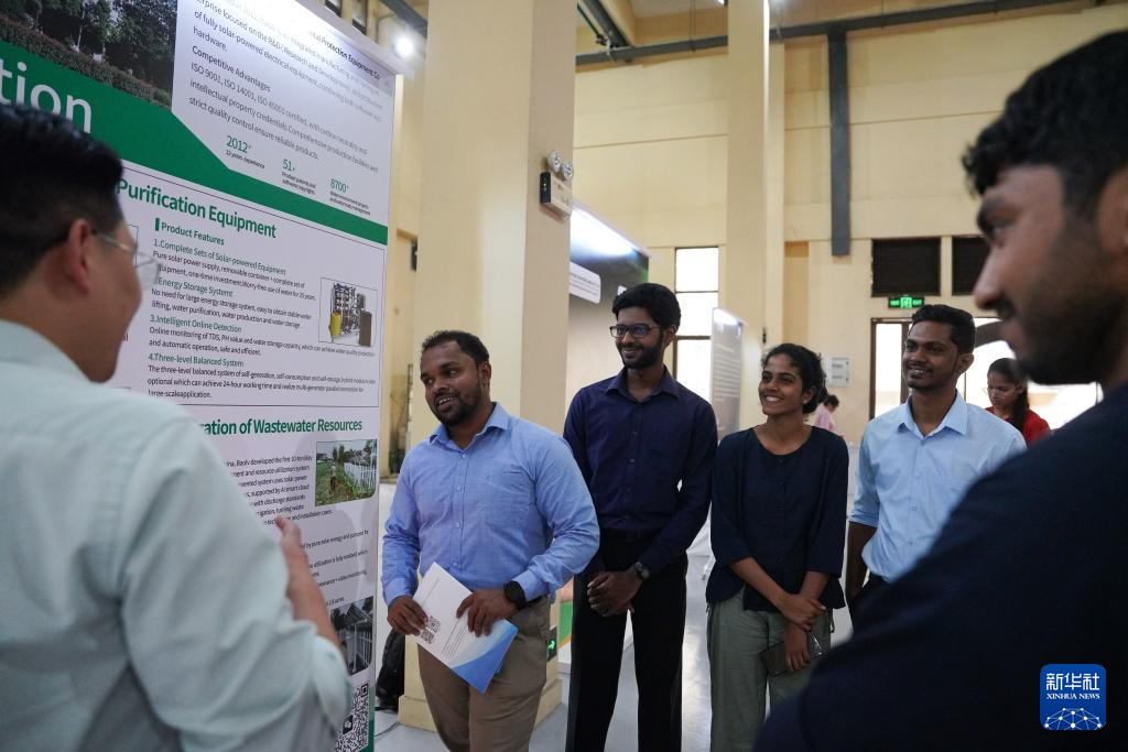 12月17日,参观者在斯里兰卡康提举行的“气候韧性下安全供水论坛及中斯环保展”上交流。新华社记者 陈冬书 摄