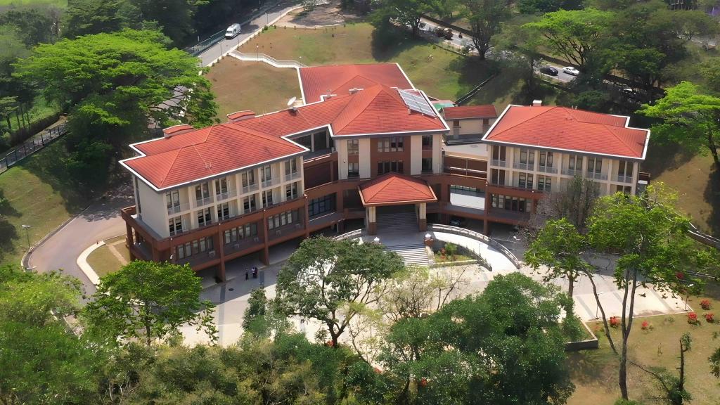 这是9月26日在斯里兰卡康提市拍摄的中斯水中心科研综合大楼,大楼由中国商务部援建(无人机照片)。新华社发(加扬·萨米拉摄)