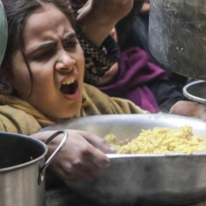 12月27日,巴勒斯坦人在加沙城领取救济食物。