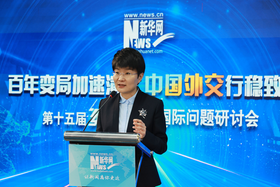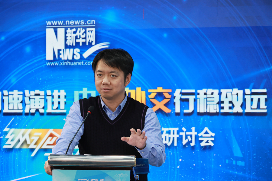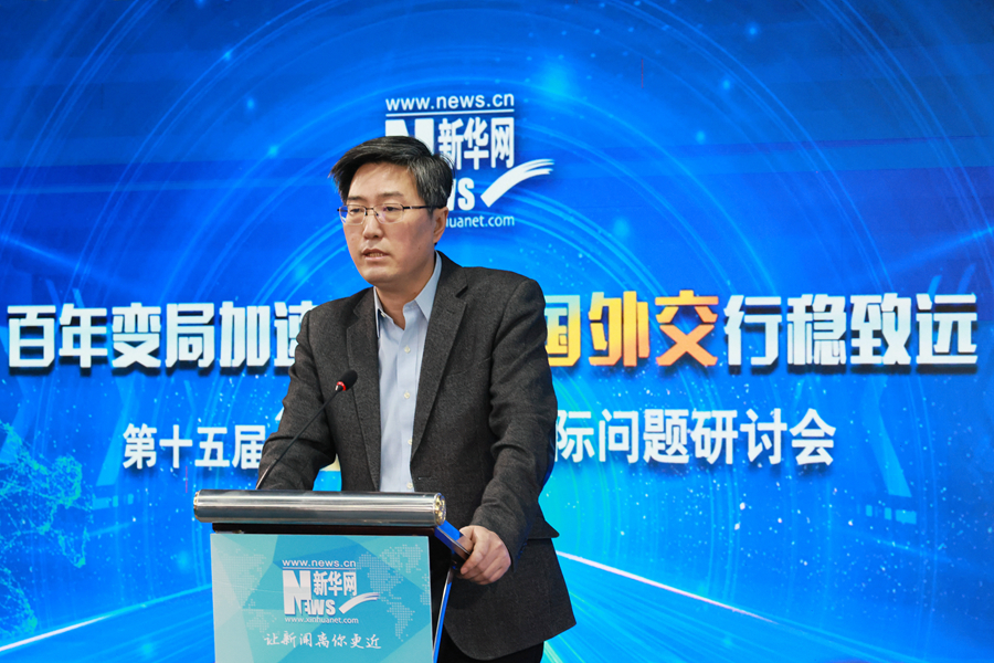 1月2日,新华网第十五届“纵论天下”国际问题研讨会在北京新华网总部举办。图为外交学院院长、中国国际关系学会副会长王帆在进行下半场主题演讲。新华网 杨霁昕 摄