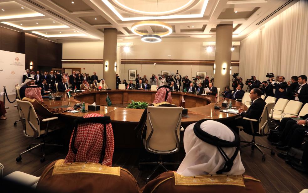 这是2024年12月14日在约旦亚喀巴拍摄的叙利亚问题阿拉伯部长级联络委员会会议现场。新华社发(穆罕默德·阿布·古什摄)