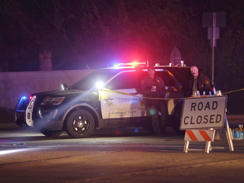 1月9日,警察在美国加利福尼亚州洛杉矶县东部的阿尔塔迪纳地区设置路障。新华社发(邱晨摄)
