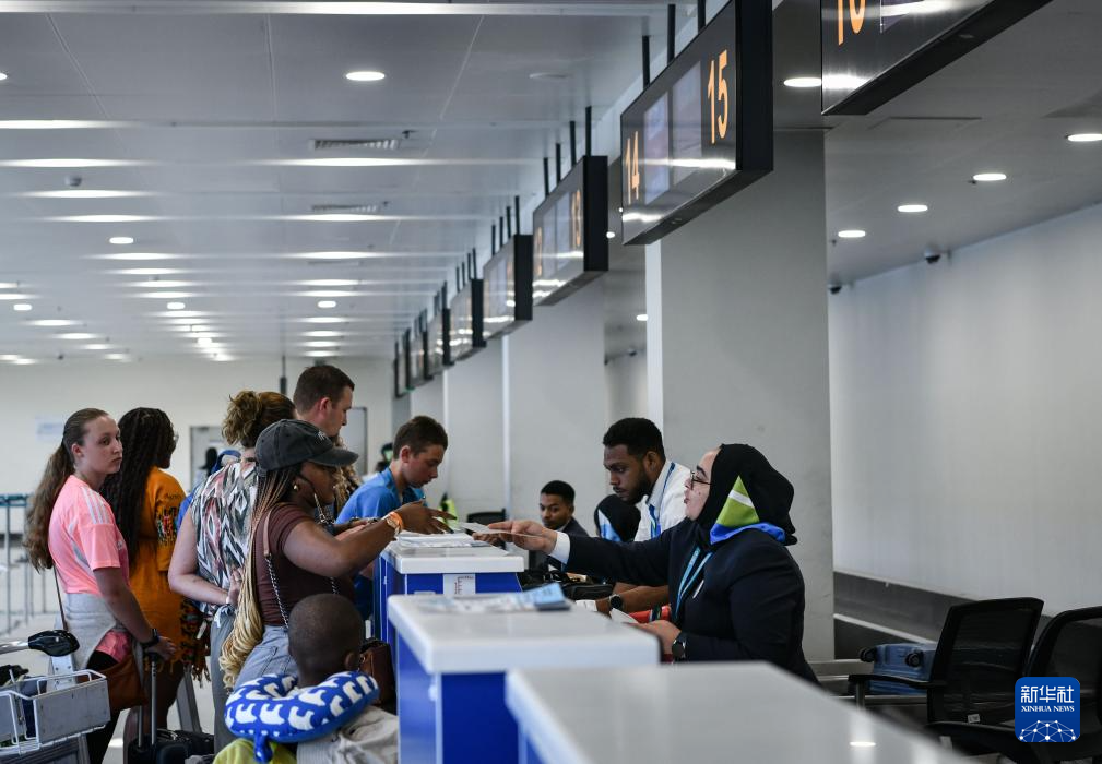 2024年12月10日,在坦桑尼亚桑给巴尔岛,旅客在阿贝德·阿马尼·卡鲁姆国际机场(桑给巴尔国际机场)3号航站楼内值机。新华社记者 韩旭 摄