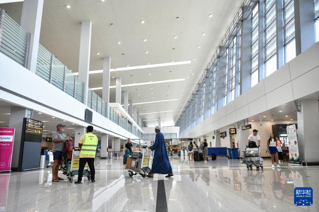 2024年12月10日,在坦桑尼亚桑给巴尔岛,旅客在阿贝德·阿马尼·卡鲁姆国际机场(桑给巴尔国际机场)3号航站楼内。新华社记者 韩旭 摄
