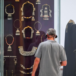 1月12日,游客在阿曼马斯喀特参观阿曼国家博物馆。