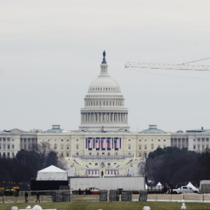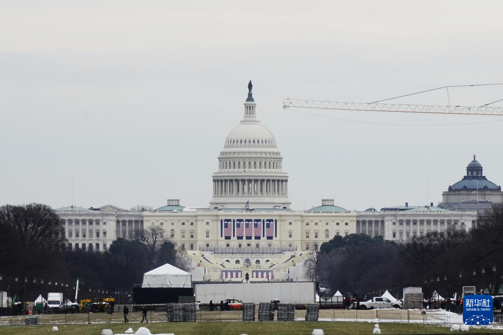 1月18日,在美国首都华盛顿,工作人员拆除在国会大厦外为观礼准备的设施。新华社记者 吴晓凌 摄