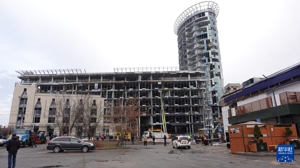 这是1月18日拍摄的乌克兰首都基辅市舍甫琴科夫斯基区一栋遭“伊斯坎德尔”导弹袭击的办公大楼,该办公楼比邻乌克兰导弹和精确制导武器制造工厂“阿尔乔姆”公司。新华社记者 李东旭 摄