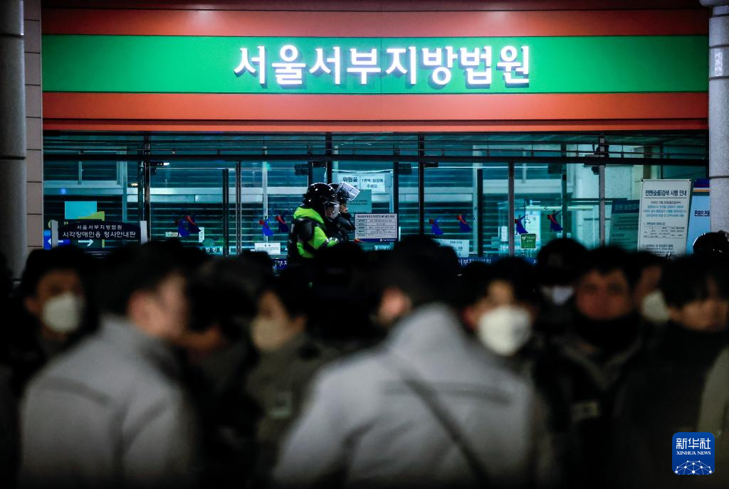 1月19日,韩国警察在首尔西部地方法院附近维持秩序。新华社/纽西斯通讯社