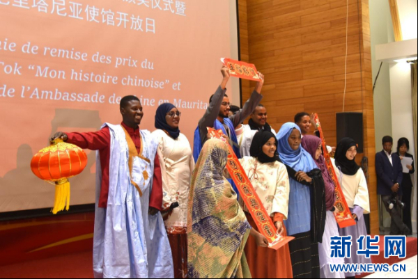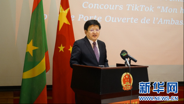 新华网达喀尔1月23日电(记者司源)努瓦克肖特消息:21日,中国驻毛里塔尼亚使馆举办“我的中国故事”短视频大赛颁奖仪式暨使馆开放日活动,正式拉开中毛建交60周年系列庆祝活动序幕。中国驻毛里塔尼亚大使唐中东出席活动并致辞,努瓦克肖特大学孔子学院师生及当地各界青年代表150余人参加本次活动。