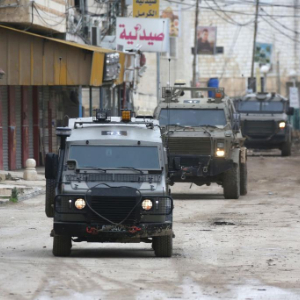 这是1月22日在约旦河西岸城市杰宁拍摄的以军车辆。