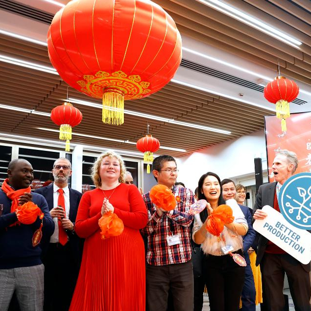 1月23日,在位于意大利罗马的联合国粮农组织总部,人们欢庆佳节。