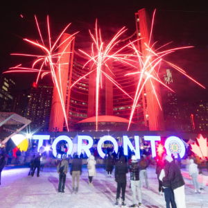 当日,加拿大多伦多举办首届春节烟花庆典,庆祝即将到来的农历春节。