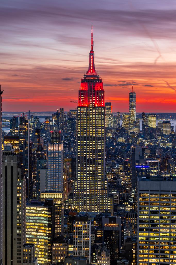帝国大厦在日落时分亮起“中国红”,这是该建筑连续第25年以此方式庆祝中国春节。
