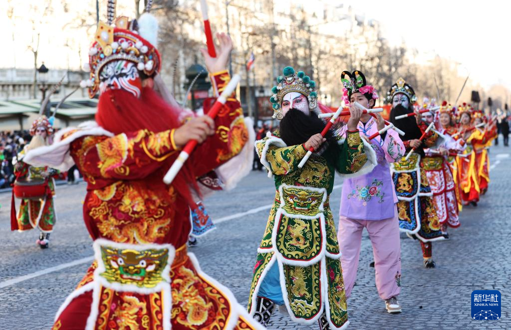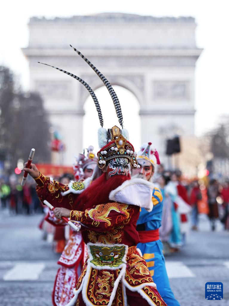 2日,“欢乐春节满巴黎,龙狮贺岁舞香街”春节巡游活动在巴黎香榭丽舍大街举行,来自广东汕头潮阳的西门英歌队在巡游活动中惊艳亮相,让当地民众大饱眼福。英歌是广东潮汕地区的传统民俗舞蹈,融汇戏剧、舞蹈、武术等多种元素于一体,表演气势澎湃,又被称为“中华战舞”,2006年入选首批国家级非物质文化遗产名录。
