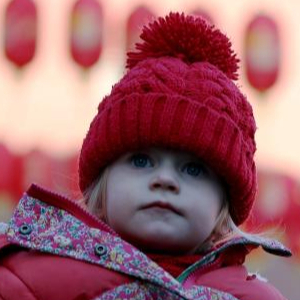 2月2日,在英国伦敦,一名女孩在英国伦敦中国城参加春节庆祝活动。
