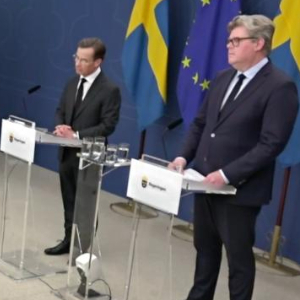 这张视频截图显示,2月4日,瑞典政府在斯德哥尔摩就校园枪击事件召开新闻发布会。