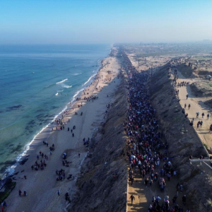 和易卜拉欣一样,数十万巴勒斯坦人正在焦土瓦砾之上踏出一条条回家路。一串串蜿蜒的人流,一行行坚定的脚印,好像是对近期美方所谓“清空”和“接管”加沙言论的无声反击。