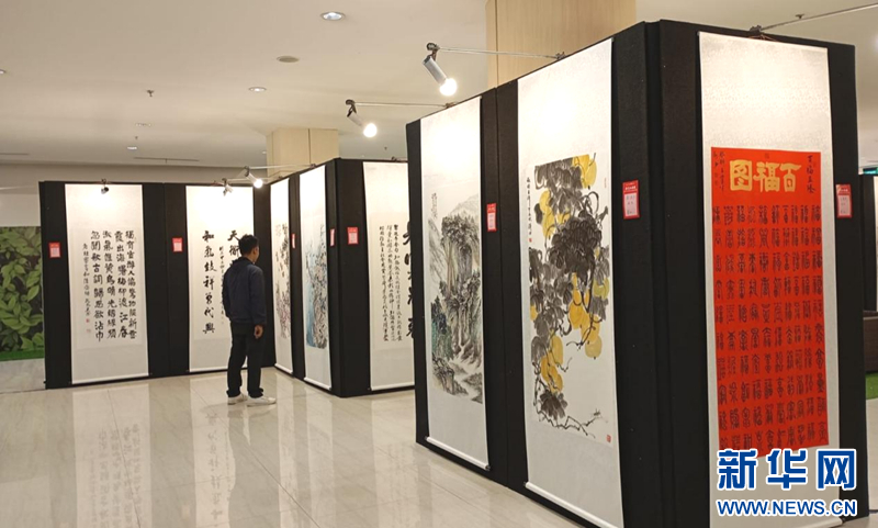 2月8日,在印尼万丹省唐格朗市,观众欣赏参展的书画作品。哈娅提 摄
