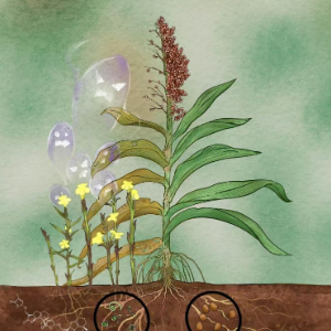此项研究中,科研团队基于原创的基因挖掘技术,结合大数据分析等技术,首次鉴定出高粱中两个关键的独脚金内酯外排转运基因,命名为SbSLT1和SbSLT2。研究发现,敲除这两个基因后,高粱向外释放独脚金内酯的过程受到抑制,导致独脚金无法正常萌发,从而显著提高了高粱的抗寄生能力。