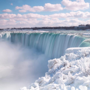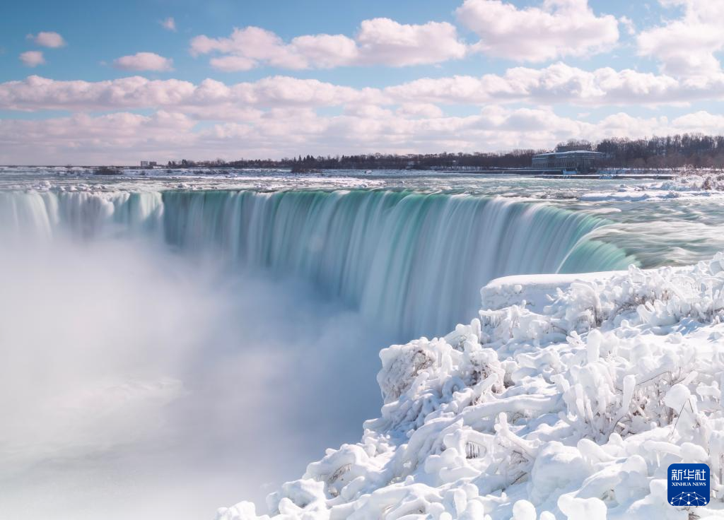 近日,冬季寒冷天气让加拿大安大略省大大小小的瀑布大都呈现出冰封雪盖的别样风情。