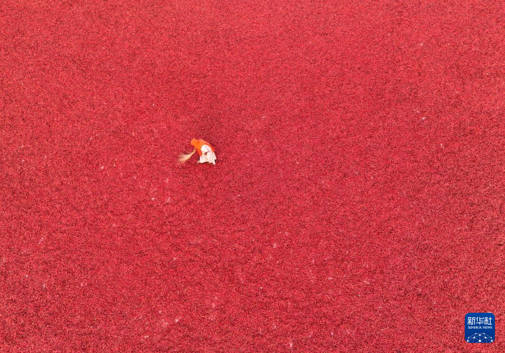 近日,在孟加拉国西北部博格拉区,农民们将收获的辣椒在地上铺开晾晒,形成一幅别致的“红毯”风景线。