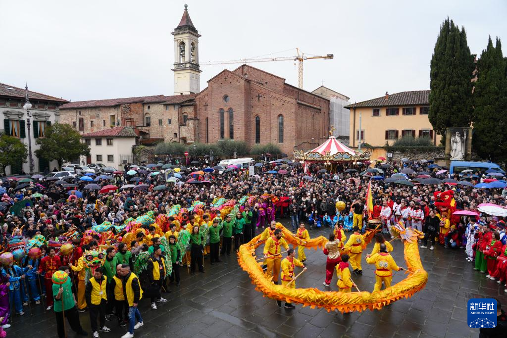 为庆祝中国农历蛇年春节,意大利普拉托市华人聚居区近日举办大型巡游活动,吸引数千民众观看。