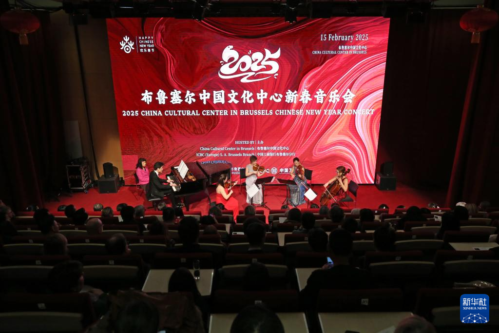 当日,比利时布鲁塞尔中国文化中心举行2025年新春音乐会。音乐会上,中外艺术家为观众献上《春节序曲》《彩云追月》《第二圆舞曲》《父亲的草原母亲的河》等作品,展现了中西音乐的独特魅力。