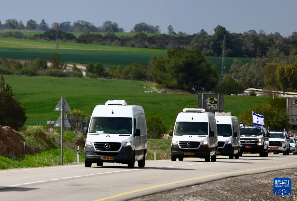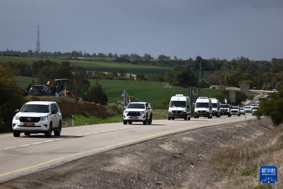 2月20日,载有被扣押人员遗体的车队行驶在以色列南部的一条公路上。新华社发(贾马尔·阿瓦德摄)