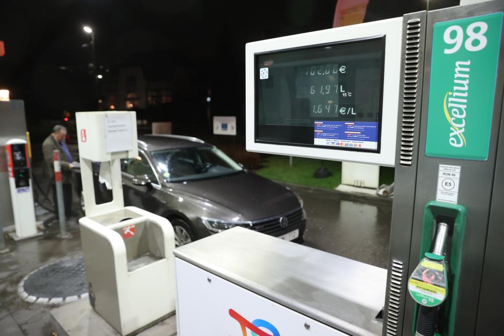 2024年1月5日,在比利时布鲁塞尔,一名男子给汽车加油。新华社记者赵丁喆摄
