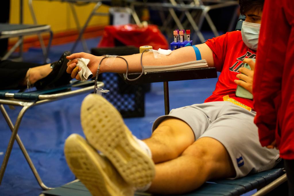 图为2021年6月14日,在美国纽约州长岛地区的尤宁代尔,献血志愿者在美国纽约血液中心举行的献血活动上献血。新华社发(郭克摄)