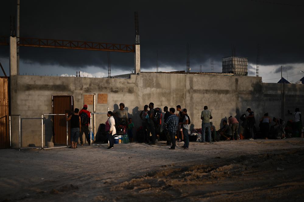 2023年5月16日,移民在墨西哥雷诺萨的一处收容所外等待进入。新华社记者辛悦卫摄