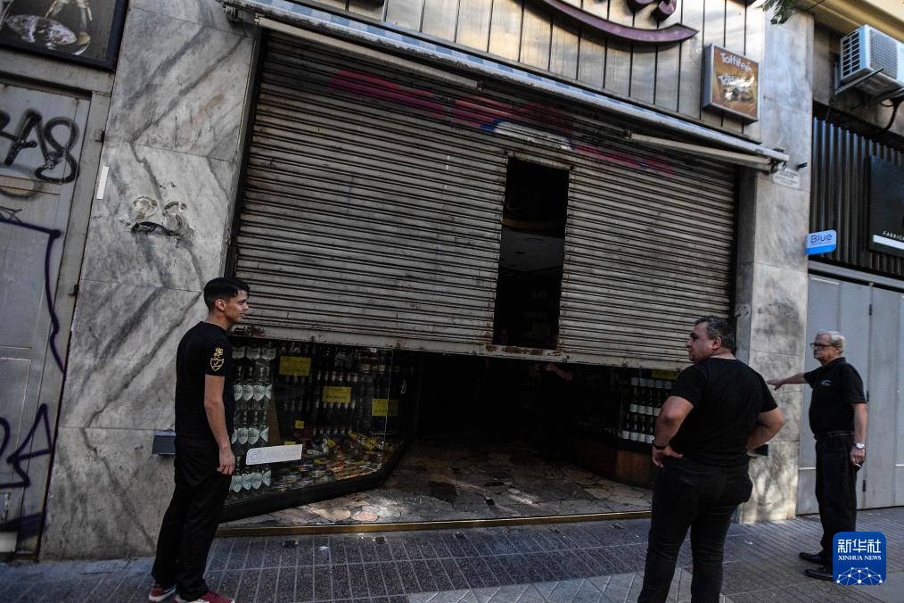 2月25日,智利首都圣地亚哥一家酒类商店在停电期间关门闭店。
