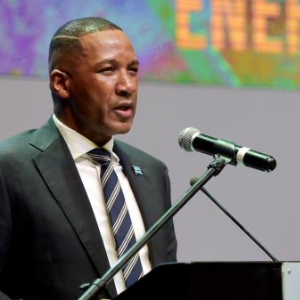 2月24日,在博茨瓦纳首都哈博罗内,博茨瓦纳总统博科在南部非洲发展共同体(南共体)“可持续能源周”开幕式上致辞。