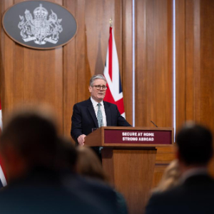 2月25日,英国首相斯塔默在位于伦敦的议会下院发表声明后出席新闻发布会。