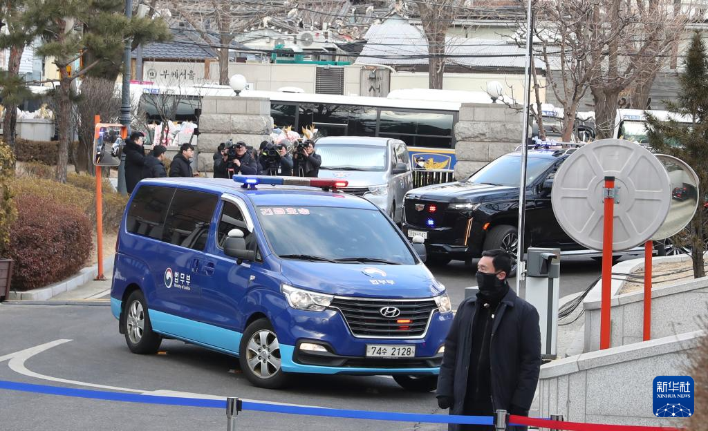 2月25日,在韩国首尔,尹锡悦乘坐的车辆抵达宪法法院。