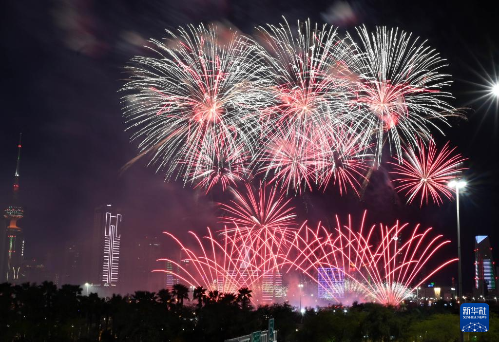 这是2月25日在科威特首都科威特城拍摄的烟花表演活动。