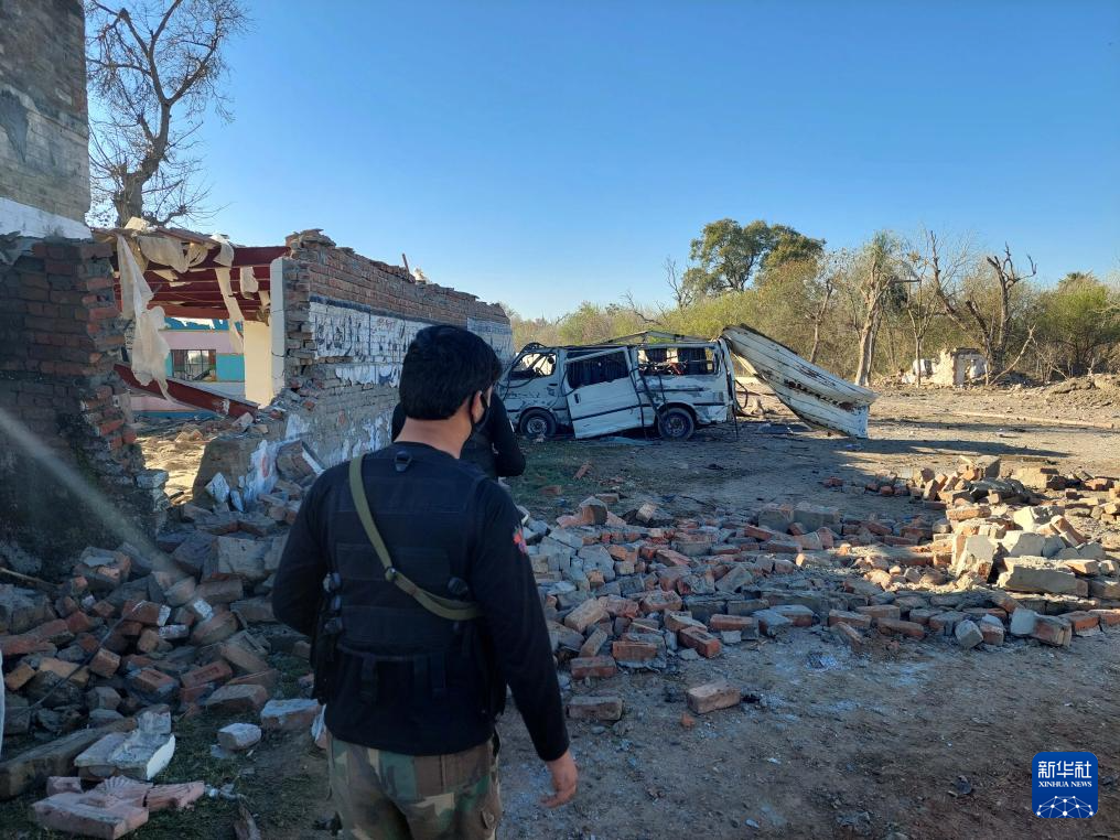 这是3月5日在巴基斯坦西北部开伯尔-普什图省本努地区拍摄的遭袭现场。新华社发