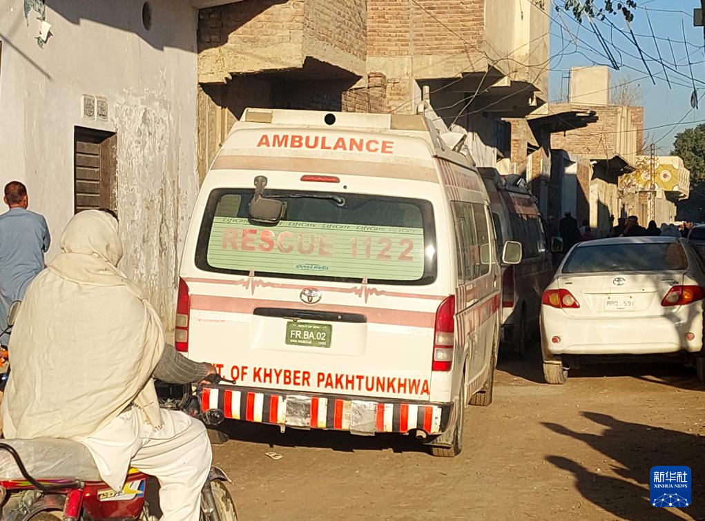 这是3月5日在巴基斯坦西北部开伯尔-普什图省本努地区遭袭现场附近拍摄的救护车。新华社发